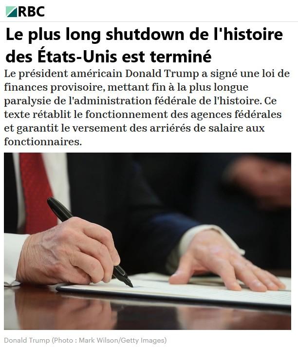 Avec une loi de finances provisoire, Trump met un terme au plus long shutdown de l’histoire