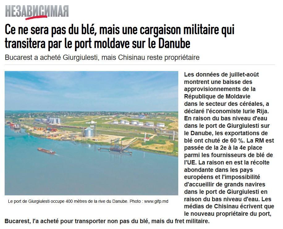 Les données de juillet-août montrent une baisse des approvisionnements de la République de Moldavie dans le secteur des céréales, a déclaré l’économiste Iurie Rija. En raison du bas niveau d’eau dans le port de Giurgiulesti sur le Danube, les exportations de blé ont chuté de 60 %. La République de Moldavie est passée de la 2e à la 4e place parmi les fournisseurs de blé de l’UE. La raison en est la récolte abondante dans les pays européens et l’impossibilité d’accueillir de grands navires dans le port de Giurgiulesti en raison du bas niveau d’eau. Les médias de Chisinau écrivent que le nouveau propriétaire du port, Bucarest, l’a acheté pour transporter non pas du blé, mais du fret militaire.