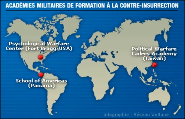 [8] La School of Americas fut transférée ultérieurement à Fort Benning, USA. Voir exemple des élèves formés dans ce rapport.