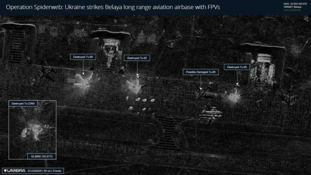 Le parc initial (justement connu grâce au comptage dans le cadre du START) des forces aériennes stratégiques russes comprenait 57 Tu-22M, 47 TU-95 et 16 Tu-160, 121 MiG 31, 19 IL-78 ravitailleurs et 7 Be A-50 à radar aéroporté. L’aviation à longue portée est en principe stationnée sur la 6950ème Base aérienne d’Engels-2 (oblast de Saratov) avec des Tu-22 M3, Tu-95 MS6, Tu-160, sur la 6952 eme Base aérienne (Oblast de l’Amour) avec des Tu-95 MS16 puis la 6953ème base aérienne de Belaya (Oblast d’Irkoutsk) avec des Tu-22M3. Des mouvements inter bases expliquent les localisations des avions stationnées sur les bases attaquées, qui abritent les quatre escadrilles équipées de Tu-22M3/MR, les trois équipées de u-95MS et celle opérant des Tu-160. Lors de l’attaque du 1er juin les bases accueillaient :