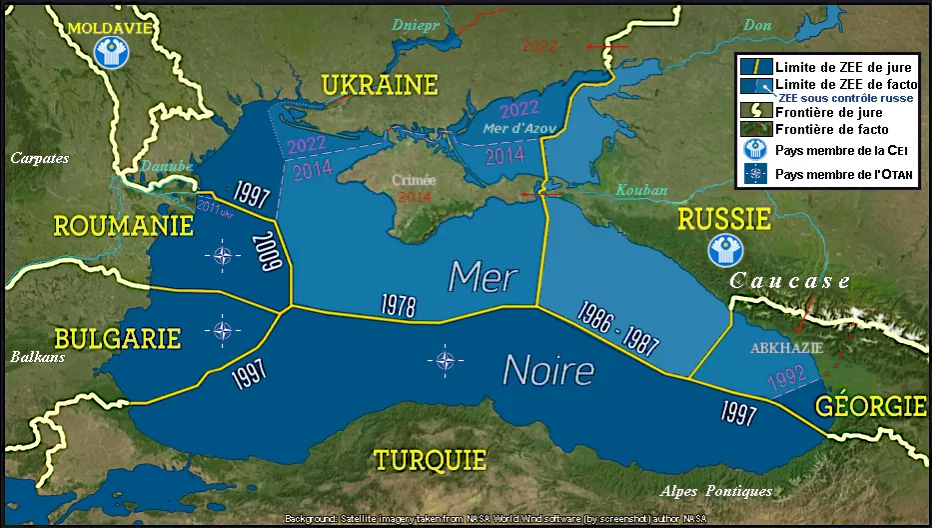La Russie qui pourrait bien avoir conquis toute la région côtière de l’Ukraine sur la mer Noire, en fin d’opération, récupérera l’immense territoire maritime qui lui était associé, multipliant par trois la superficie de ses eaux territoriales et de sa zone économique exclusive en mer Noire.