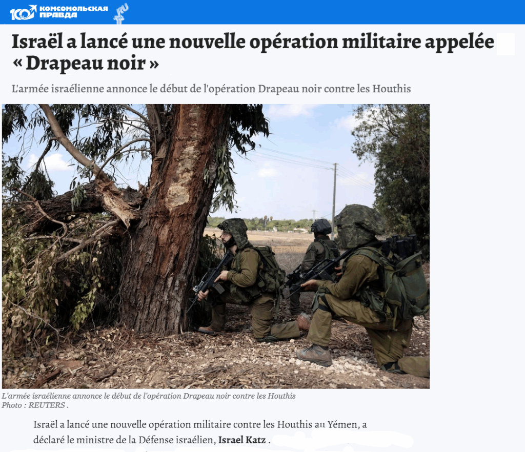 Israël a lancé une nouvelle opération militaire contre les Houthis au Yémen, a déclaré le ministre de la Défense israélien, Israel Katz. Selon la chaîne de télévision N12, l’armée de l’air israélienne a frappé des ports et des centrales électriques contrôlés par les Houthis. L’opération a été baptisée « Drapeau noir ».