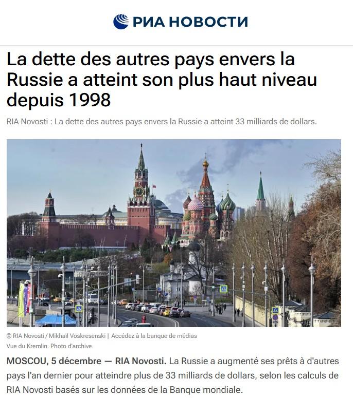 - La dette des autres pays envers la Russie a atteint son plus haut niveau depuis 1998 - 5 décembre 2025