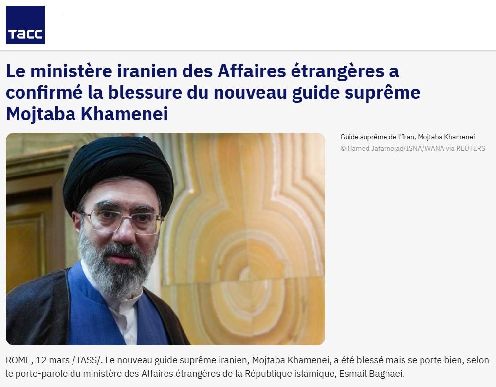 Le nouveau guide suprême iranien, Mojtaba Khamenei, a été blessé mais se porte bien, selon le porte-parole du ministère des Affaires étrangères de la République islamique, Esmail Baghaei.