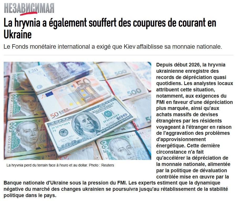 - La hryvnia ukrainienne souffre des problèmes énergétiques du pays - 27 janvier 2026