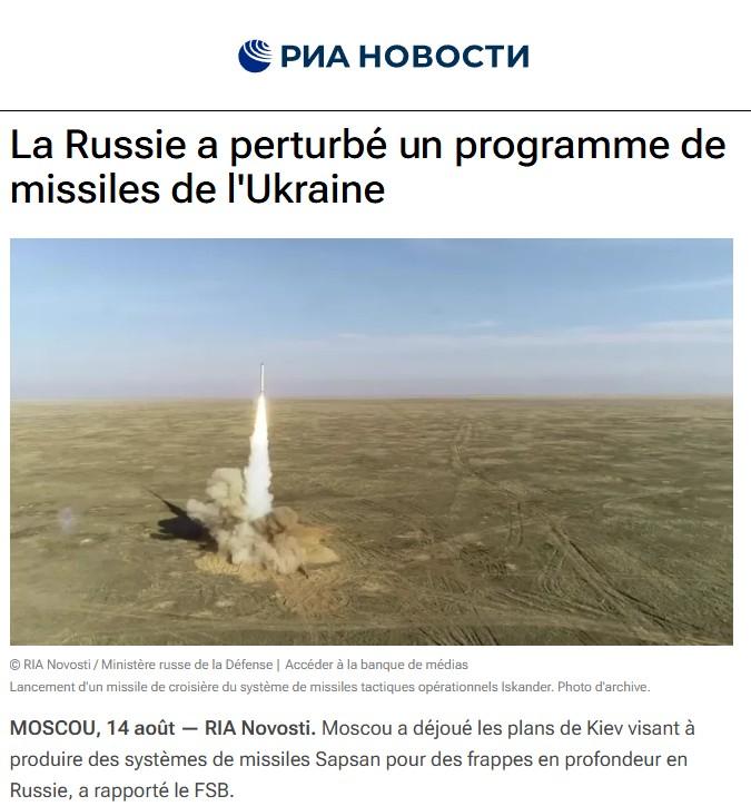 Moscou a déjoué les plans de Kiev visant à produire des systèmes de missiles Sapsan pour des frappes en profondeur en Russie, a rapporté le FSB.