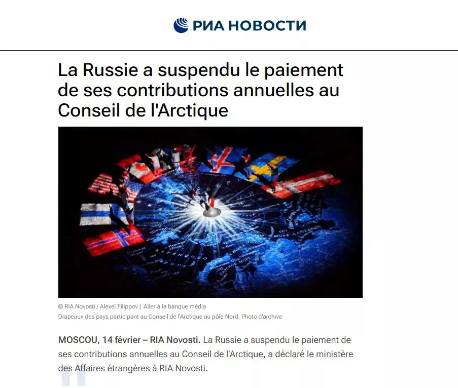 La Russie a suspendu le paiement de ses contributions annuelles au Conseil de l’Arctique, a déclaré le ministère des Affaires étrangères à RIA Novosti.