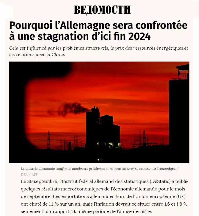 Le 30 septembre, l’Institut fédéral allemand des statistiques (DeStatis) a publié quelques résultats macroéconomiques de l’économie allemande pour le mois de septembre. Les exportations allemandes hors de l’Union européenne (UE) ont chuté de 1,1 % sur un an, mais l’inflation devrait se situer entre 1,6 et 1,8 % seulement par rapport à la même période de l’année dernière. DeStatis n’a pas encore fourni d’estimations de la croissance du PIB en septembre ni de prévisions pour l’année. La version correspondante devrait sortir le 9 octobre.