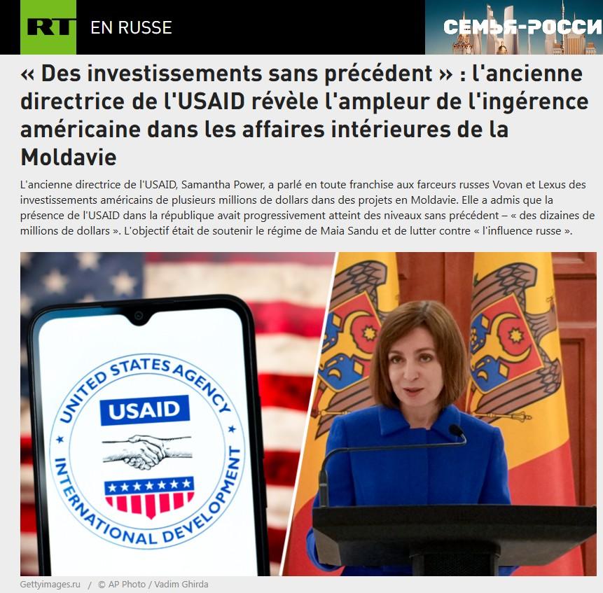 L’ancienne directrice de l’USAID, Samantha Power, a parlé en toute franchise aux farceurs russes Vovan et Lexus des investissements américains de plusieurs millions de dollars dans des projets en Moldavie. Elle a admis que la présence de l’USAID dans la république avait progressivement atteint des niveaux sans précédent – « des dizaines de millions de dollars ». L’objectif était de soutenir le régime de Maia Sandu et de lutter contre « l’influence russe ».
