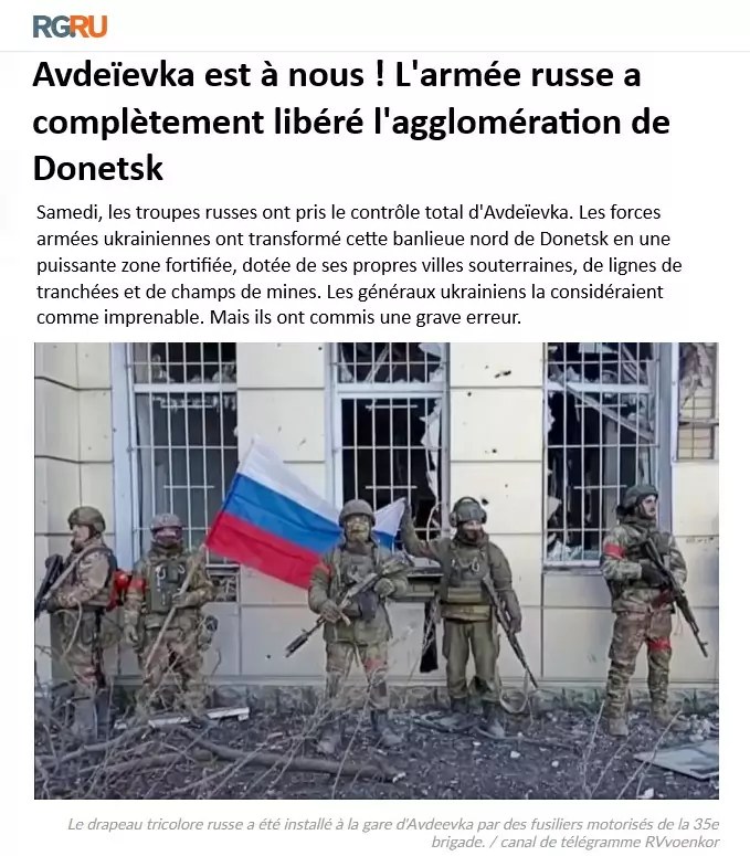 L’armée russe prend la ville d’Avdeïevka, l’agglomération de Donetsk complètement libérée