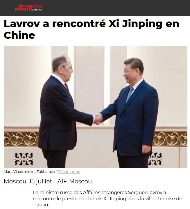 Ce 15 juillet, une réunion des ministres des Affaires étrangères de l’Organisation de coopération de Shanghai (OCS) a lieu à Tianjin, et le dirigeant de la RPC s’est entretenu avec tous les ministres des Affaires étrangères participant à l’événement, puis s’est entretenu séparément avec la délégation russe.