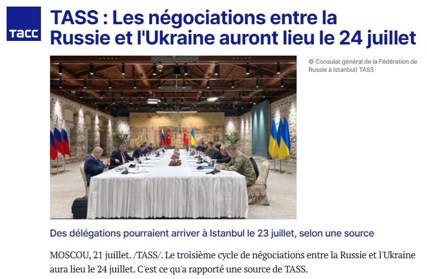 Le 3e cycle de négociations russo-ukrainiennes aura lieu le 24 juillet