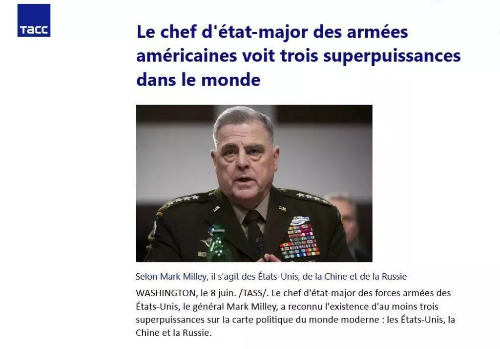 Le chef d’état-major des forces armées des États-Unis, le général Mark Milley, a reconnu l’existence d’au moins trois superpuissances sur la carte politique moderne du monde : les États-Unis, la Chine et la Russie.