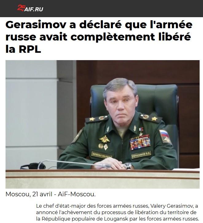 Le chef d’état-major des armées russes annonce la libération complète de la République populaire de Lougansk