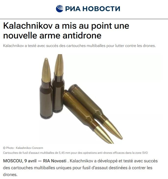 - Le groupe Kalachnikov a mis au point des cartouches multiballes pour la lutte antidrone - 9 avril 2026