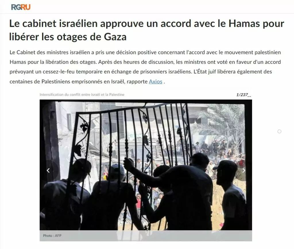 Le Cabinet des ministres israélien a pris une décision positive concernant l’accord avec le mouvement palestinien Hamas pour la libération des otages. Après des heures de discussion, les ministres ont voté en faveur d’un accord prévoyant un cessez-le-feu temporaire en échange de prisonniers israéliens. L’État juif libérera également des centaines de Palestiniens emprisonnés en Israël, rapporte Axios.