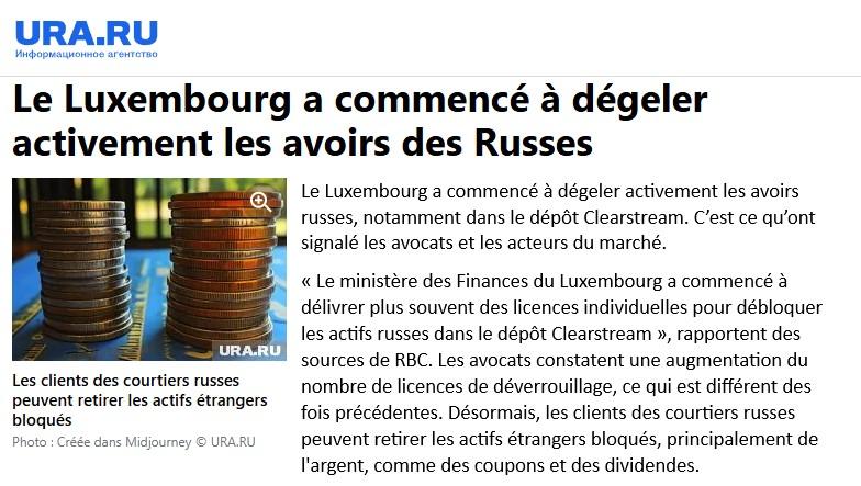 « Le ministère des Finances du Luxembourg a commencé à délivrer plus souvent des licences individuelles pour débloquer les actifs russes dans le dépôt Clearstream », rapportent des sources de RBC. Les avocats constatent une augmentation du nombre de licences de déverrouillage, ce qui est différent des fois précédentes. Désormais, les clients des courtiers russes peuvent retirer les actifs étrangers bloqués, principalement de l’argent, comme des coupons et des dividendes.