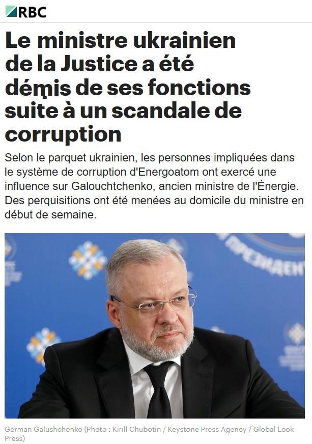 Le ministre ukrainien de la Justice démis de ses fonctions dans le cadre du scandale de corruption d’Energoatom