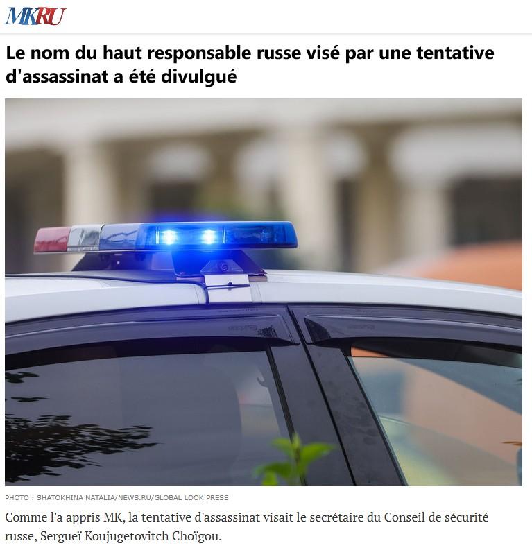 Comme l’a appris le Moskovsky Komsomolets, la tentative d’assassinat visait le secrétaire du Conseil de sécurité russe, Sergueï Koujougetovitch Choïgou.