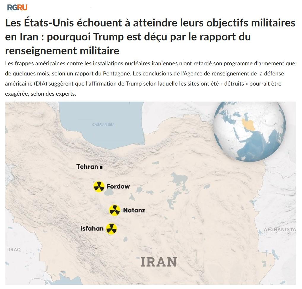 Les frappes américaines contre les installations nucléaires iraniennes n’ont retardé son programme d’armement que de quelques mois, selon un rapport du Pentagone. Les conclusions de l’Agence de renseignement de la défense américaine (DIA) suggèrent que l’affirmation de Trump selon laquelle les sites ont été « détruits » pourrait être exagérée, selon des experts.