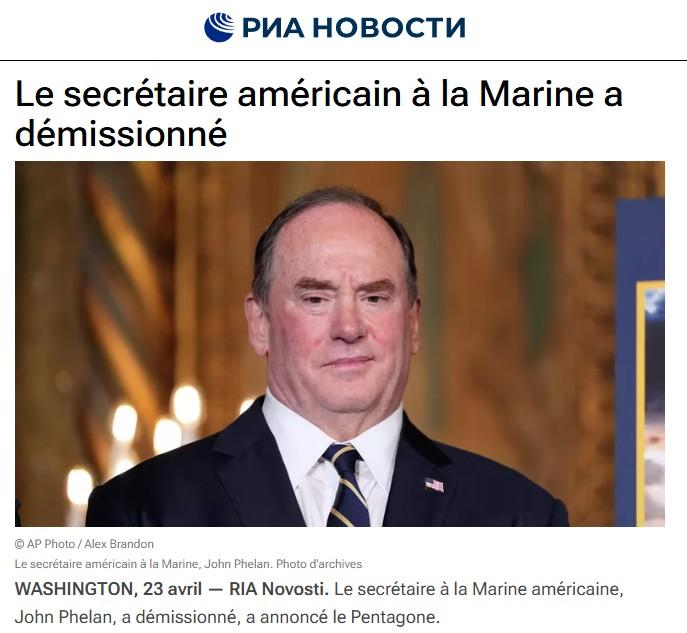 Le secrétaire à la Marine américaine, John Phelan, a démissionné, a annoncé le Pentagone.