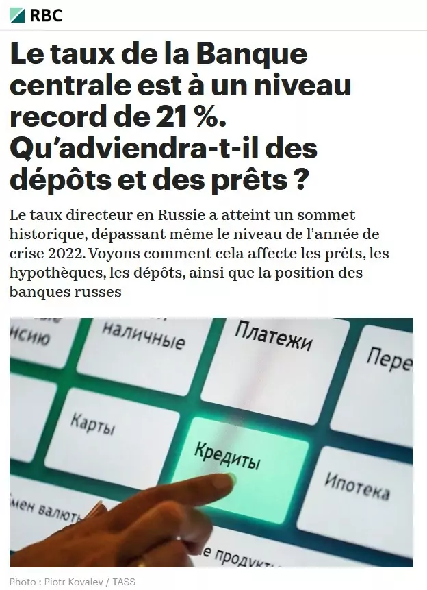 Le 25 octobre, la Banque de Russie a immédiatement relevé son taux directeur de 2 points de pourcentage, à 21 %, ce qui constitue un nouveau maximum historique. C’est au plus fort de la crise et des sanctions après le début de l’opération militaire russe en Ukraine que s’était établi le précédent record du taux directeur, à 20 %, fin février-mars 2022.