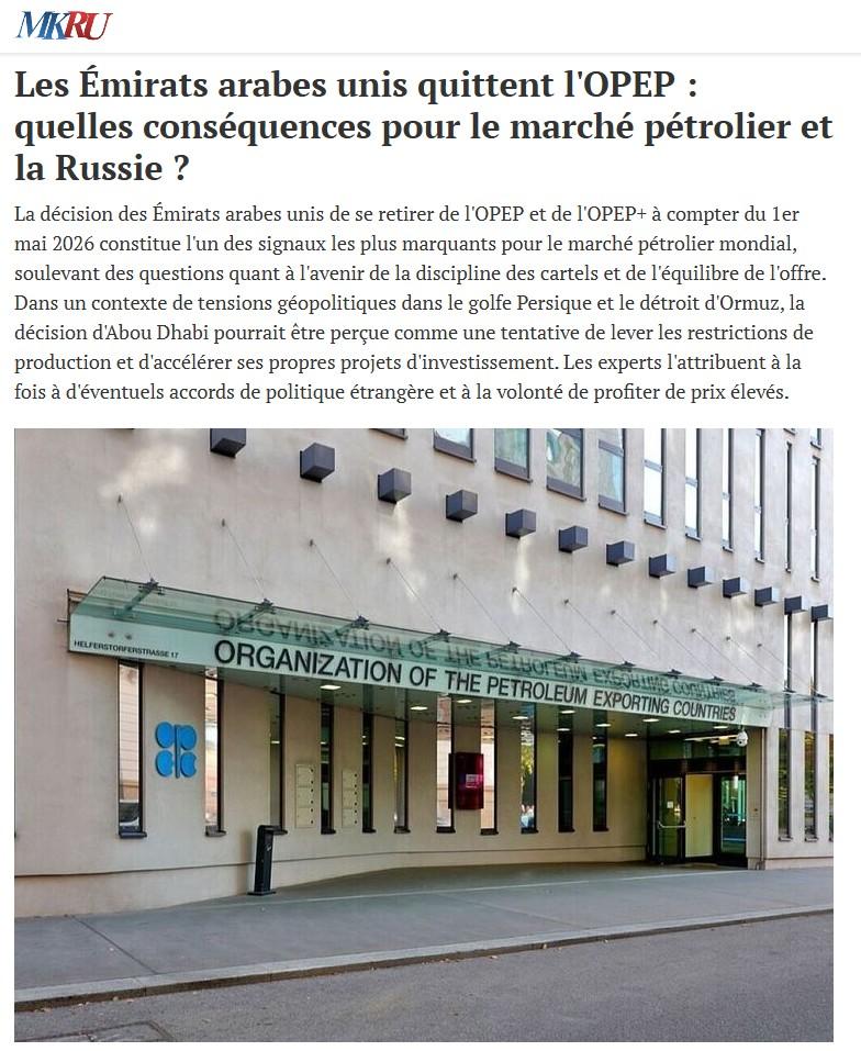 - Les Émirats arabes unis se retirent de l’OPEP et de l’OPEP+ - 29 avril 2026