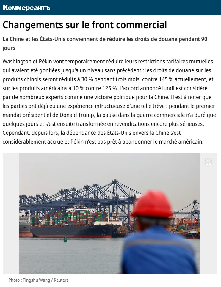Article de Kommersant du 13 mai 2025.