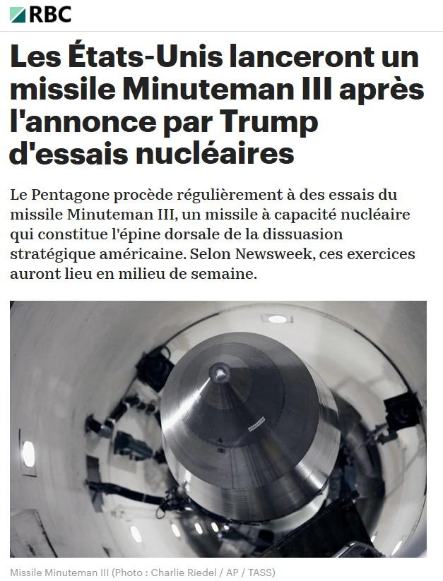 Le Pentagone procède régulièrement à des essais du missile Minuteman III, un missile à capacité nucléaire qui constitue l’épine dorsale de la dissuasion stratégique américaine. Selon Newsweek, ces exercices auront lieu en milieu de semaine.