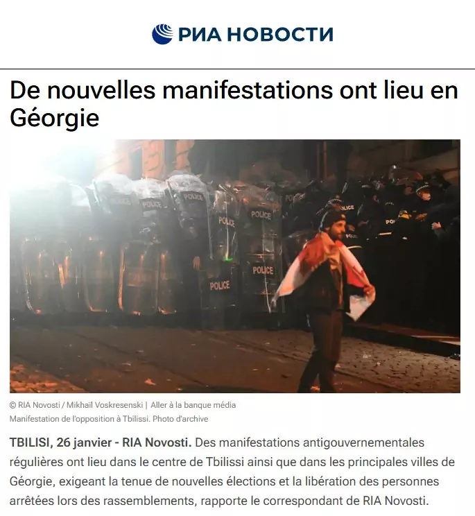Des manifestations antigouvernementales régulières ont lieu dans le centre de Tbilissi ainsi que dans les principales villes de Géorgie, exigeant la tenue de nouvelles élections et la libération des personnes arrêtées lors des rassemblements, rapporte le correspondant de RIA Novosti.