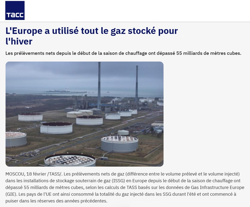 L’Europe a épuisé le gaz accumulé cet été et commence à puiser dans les réserves des années précédentes
