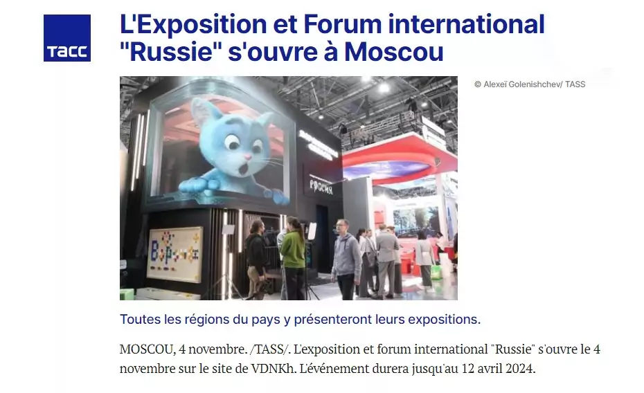 L’exposition et forum international “Russie” s’est ouverte le 4 novembre sur le site de VDNKh. L’événement durera jusqu’au 12 avril 2024.