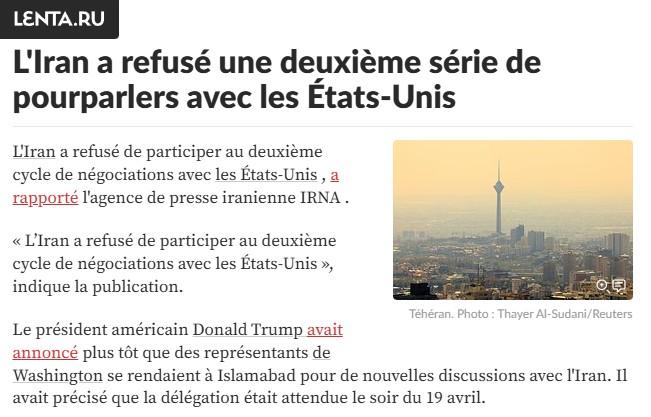 « L’Iran a refusé de participer au deuxième cycle de négociations avec les États-Unis », indique la publication.