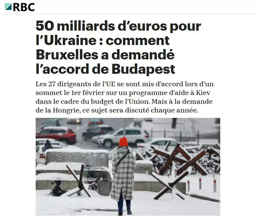 Les 27 dirigeants de l’UE se sont mis d’accord lors d’un sommet le 1er février sur un programme d’aide à Kiev dans le cadre du budget de l’Union. Mais à la demande de la Hongrie, ce sujet sera discuté chaque année.