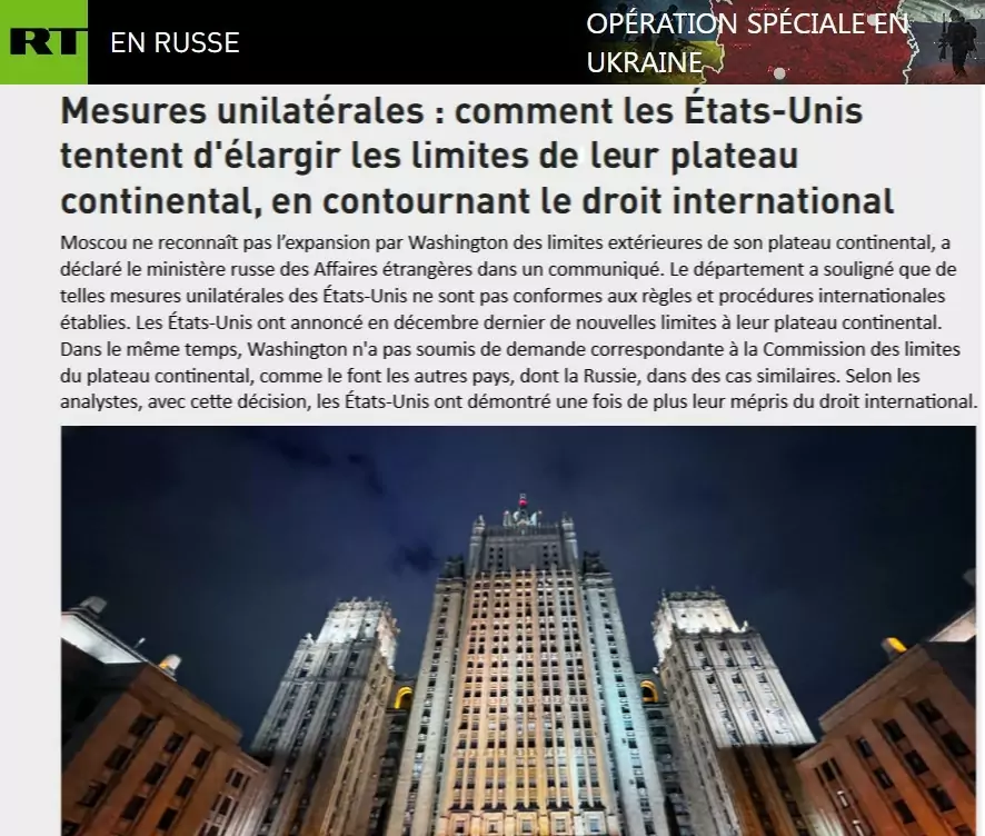 Moscou accuse les États-Unis de mépriser le droit international en élargissant sans consultation les limites de leur plateau continental
