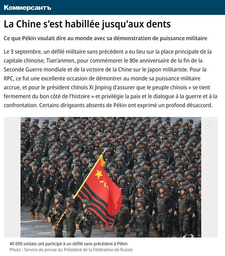Le 3 septembre, un défilé militaire sans précédent a eu lieu sur la place principale de la capitale chinoise, Tian’anmen, pour commémorer le 80e anniversaire de la fin de la Seconde Guerre mondiale et de la victoire de la Chine sur le Japon militariste. Pour la RPC, ce fut une excellente occasion de démontrer au monde sa puissance militaire accrue, et pour le président chinois Xi Jinping d’assurer que le peuple chinois « se tient fermement du bon côté de l’histoire » et privilégie la paix et le dialogue à la guerre et à la confrontation. Certains dirigeants absents de Pékin ont exprimé un profond désaccord.