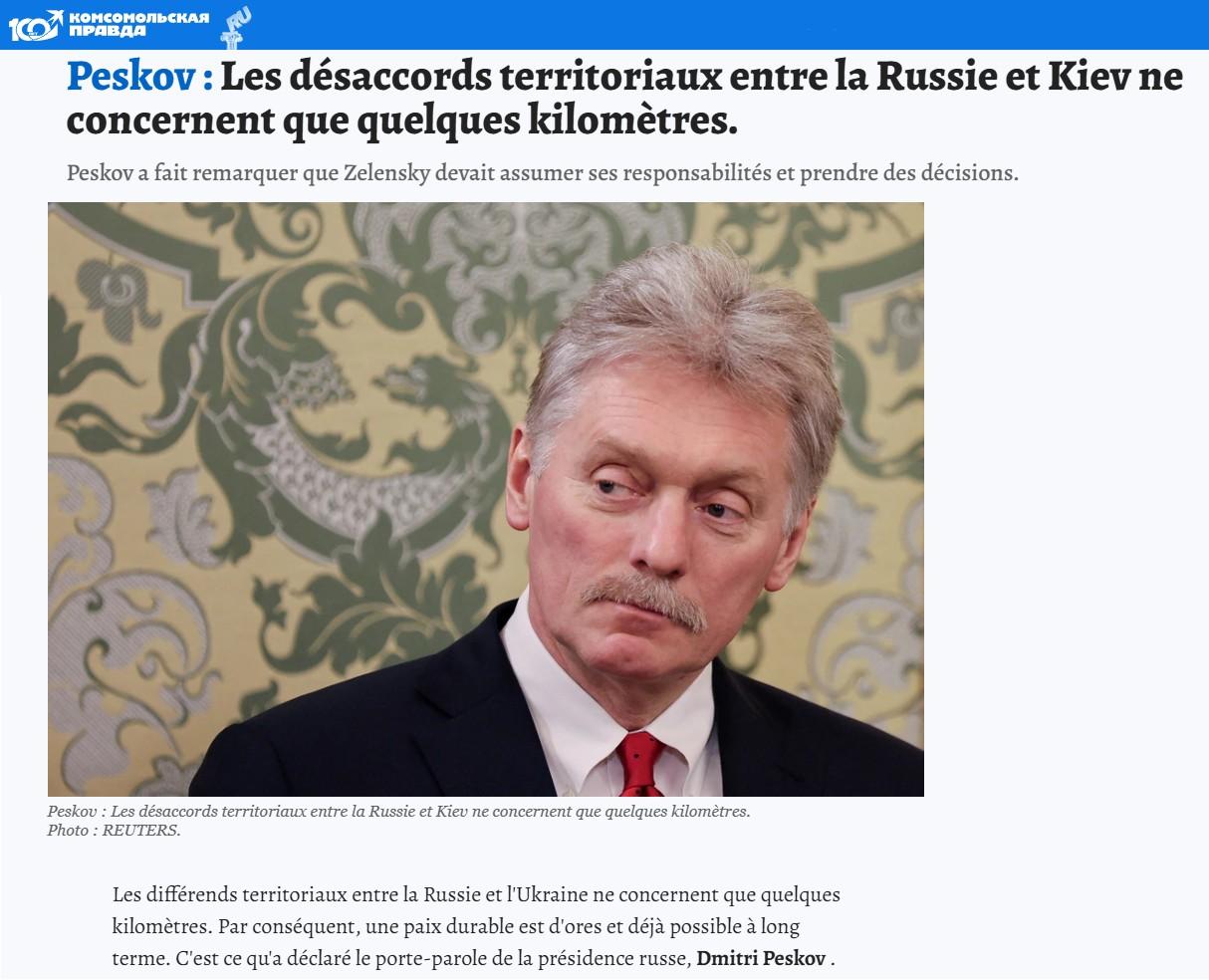 Peskov : Les différends territoriaux entre la Russie et l’Ukraine ne concernent que quelques kilomètres