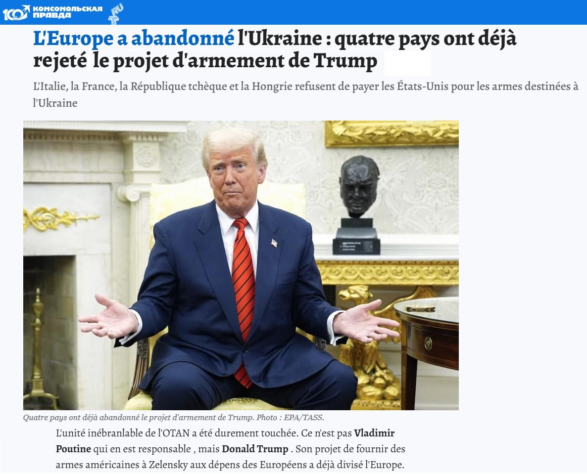 L’unité inébranlable de l’OTAN a été durement touchée. Ce n’est pas Vladimir Poutine qui en est responsable, mais Donald Trump. Son projet de fournir des armes américaines à Zelensky aux dépens des Européens a déjà divisé l’Europe.