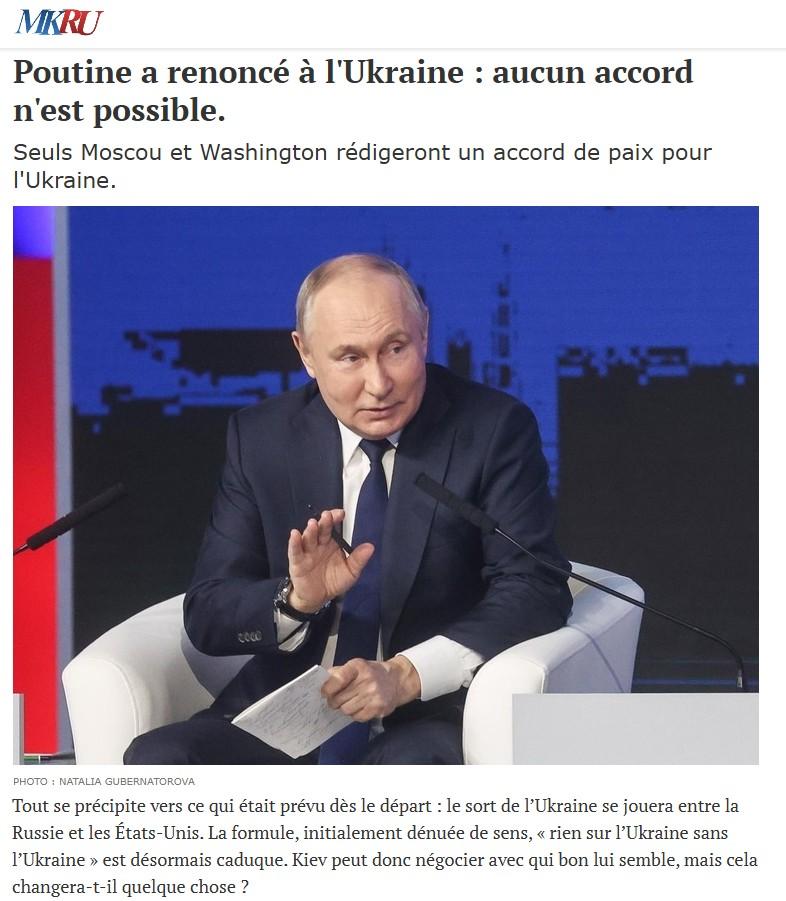 Tout se précipite vers ce qui était prévu dès le départ : le sort de l’Ukraine se jouera entre la Russie et les États-Unis. La formule, initialement dénuée de sens, « rien sur l’Ukraine sans l’Ukraine » est désormais caduque. Kiev peut donc négocier avec qui bon lui semble, mais cela changera-t-il quelque chose ?