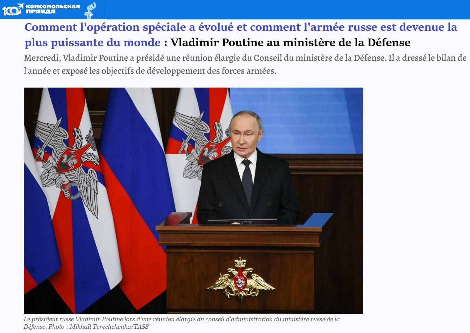 - Poutine : « Il n’existe tout simplement aucune autre armée comme la nôtre au monde » - 19 décembre 2025