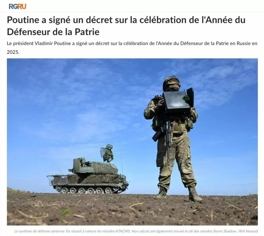 Poutine signe le décret faisant de 2025 l’année du Défenseur de la patrie