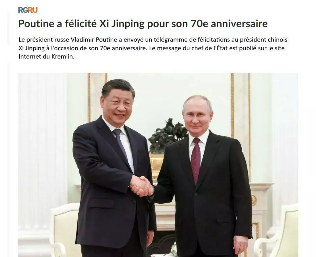 Dans son télégramme de félicitations, Poutine qualifie le dirigeant de la république populaire de Chine d’ami cher et lui souhaite santé, bonheur, bien-être et succès dans ses activités à la tête de l’État. Le président russe note également que sous la direction de Xi Jinping, la Chine a obtenu des succès impressionnants, notamment une forte croissance de l’économie nationale, l’amélioration du bien-être des citoyens et le renforcement de la position de Pékin sur la scène internationale.