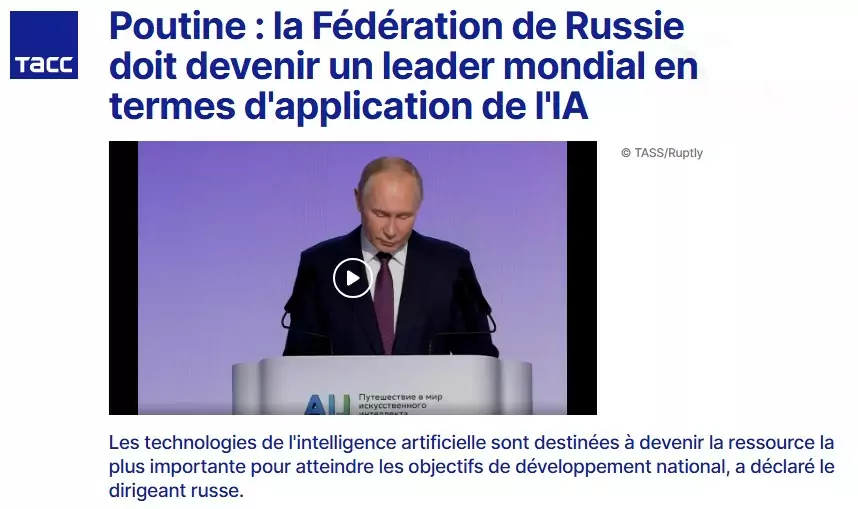 Les technologies de l’intelligence artificielle sont destinées à devenir la ressource la plus importante pour atteindre les objectifs de développement national, a déclaré le dirigeant russe.