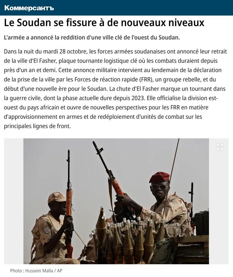 Soudan : tournant dans la guerre civile avec la chute d’une ville clef de l’ouest du pays