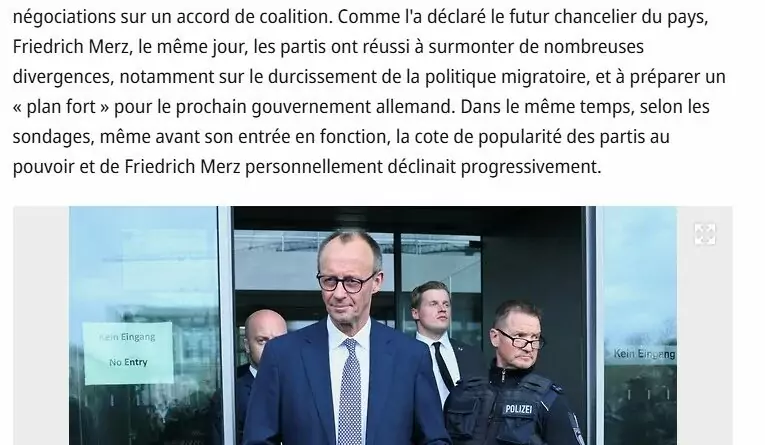 Read MoreLes conservateurs et les sociaux-démocrates allemands ont conclu le 9 avril les négociations sur un accord de coalition. Comme l’a