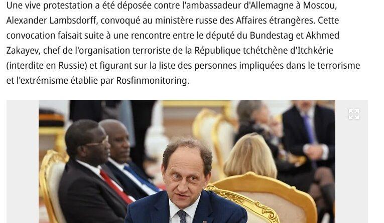 Moscou convoque l’ambassadeur d’Allemagne après la rencontre d’un député du Bundestag avec un terroriste tchétchène