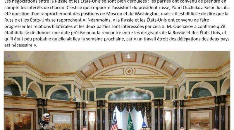 Read MoreL’un des sujets clés des négociations entre les délégations de haut rang de la Russie et des États-Unis en Arabie