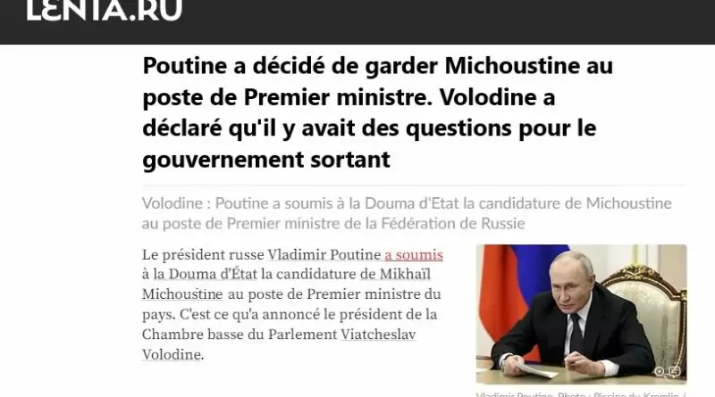 Read MoreLe président russe Vladimir Poutine a soumis à la Douma d’État la candidature de Mikhaïl Michoustine au poste de Premier