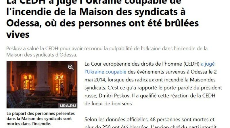 Read MoreLa Cour européenne des droits de l’homme (CEDH) a jugé l’Ukraine coupable des événements survenus à Odessa le 2 mai