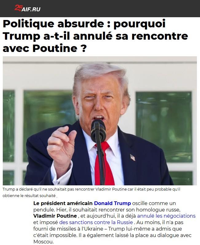 2 thoughts on “Trump annule sa rencontre avec Poutine prévue à Budapest